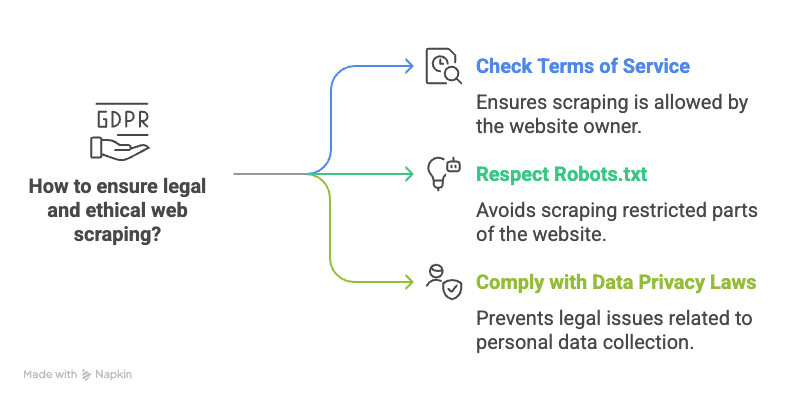 While web scraping offers many benefits, it’s crucial to follow legal and ethical guidelines to avoid potential issues: