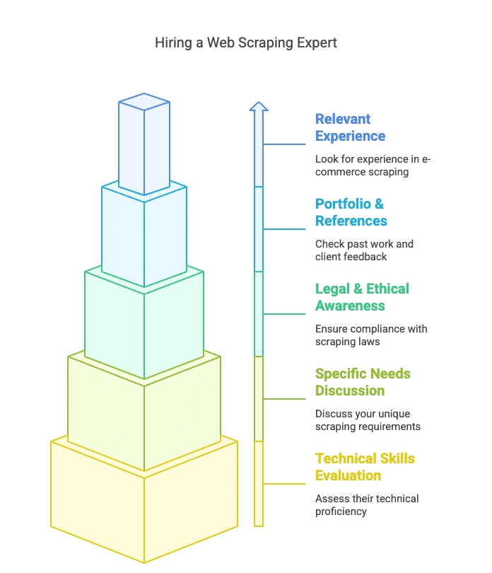 When hiring a web scraping expert, prioritize candidates with experience in scraping data relevant to your industry. They should be familiar with the type of data you need and understand the best tools and techniques for collecting it.