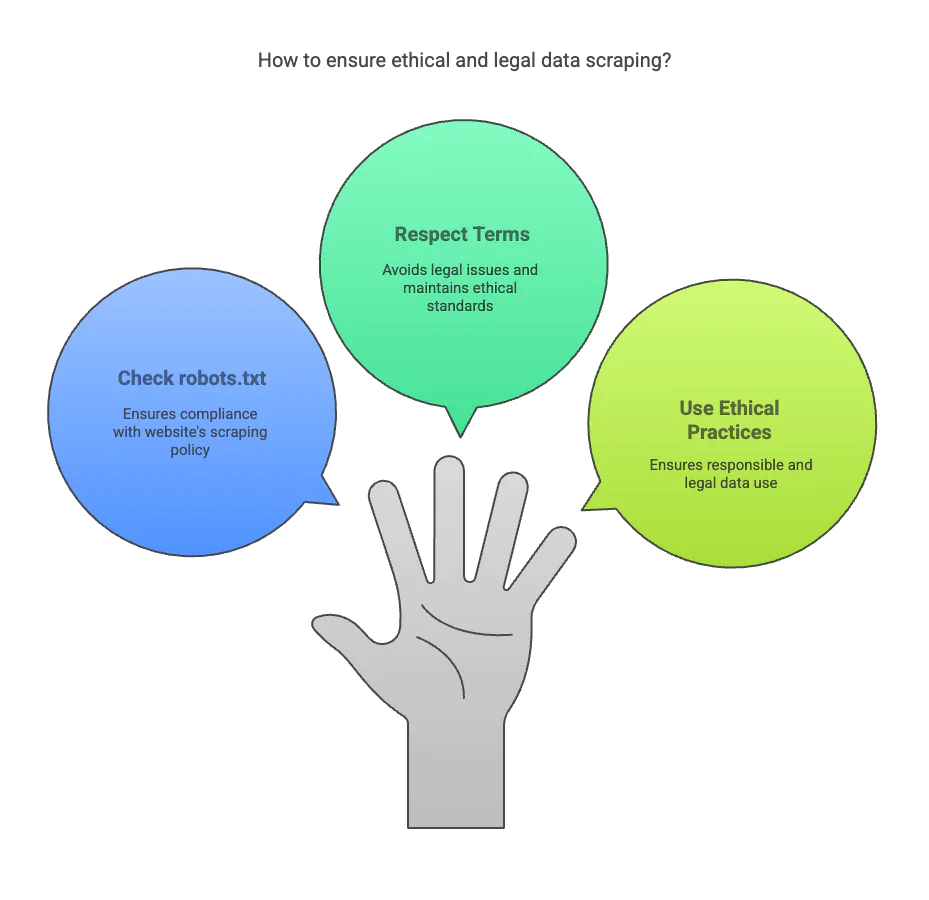 While web scraping is a powerful tool for lead generation, businesses must be aware of legal and ethical considerations. Scraping websites without permission may violate terms of service agreements or copyright laws. Here are some best practices to follow:
