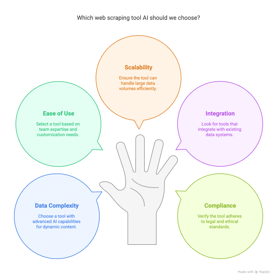 When selecting web scraping tools AI, there are several factors to consider to ensure the tool fits your business needs: